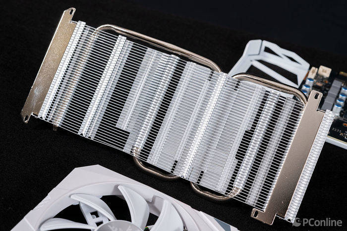 眼尖的玩家应该已经看到两根6mm的镀镍复合热管了,它们贯穿了整个散热器,配合回流焊接工艺和金属外壳的高导热特性,整个散热器还有大面积的散热鳍片,散热性能可谓备受期待。