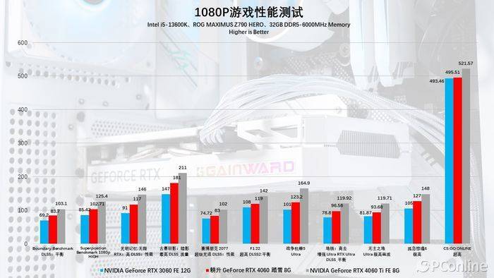 为了让观众可以更好的了解到耕升RTX 4060踏雪这张全新的甜点卡与上一代RTX 3060的差距,在相关的测试上笔者也是进行了对比。