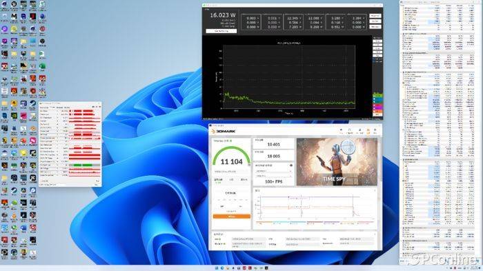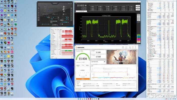 小超一下,先给耕升RTX 4060踏雪的核心加150MHz,此时TimeSpy中的显卡得分已经开始上升了,达到了11185分,核心有效频率也到了2910MHz。