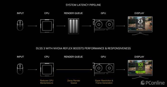 NVIDIA Reflex也是DLSS 3其中的一环,它可以使GPU和CPU同步,确保最佳响应速度和低系统延迟。