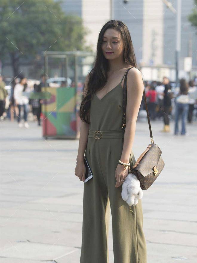 — 时尚街拍:暗绿色连体裤,休闲版型尽显自由随性的优雅风采 —