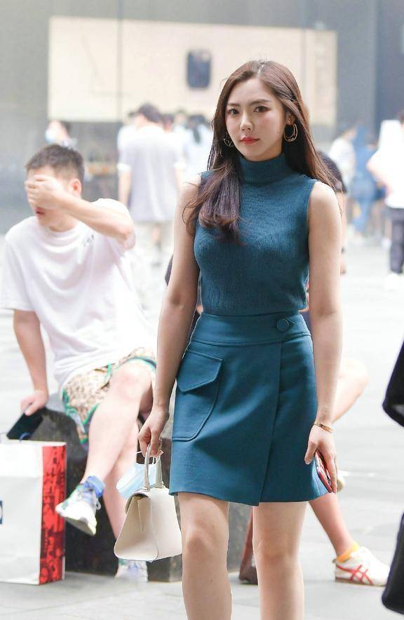 — 时尚搭配:优雅针织背心与蓝色半身裙,展现高级美感,瞬间迷倒众人 —