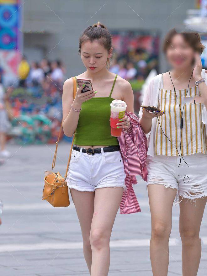 — 清新时尚:抹茶绿小背心搭配白色短裤 —