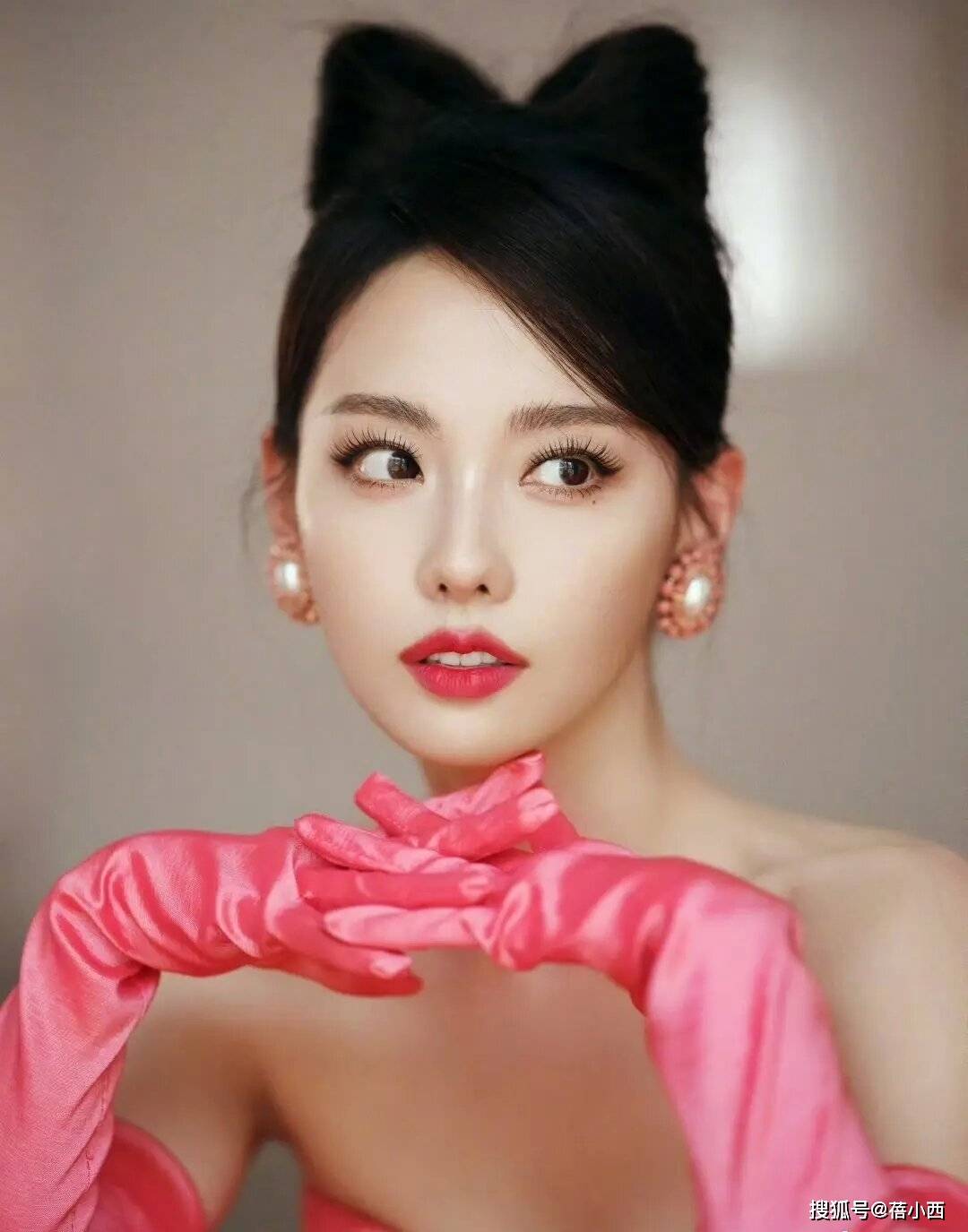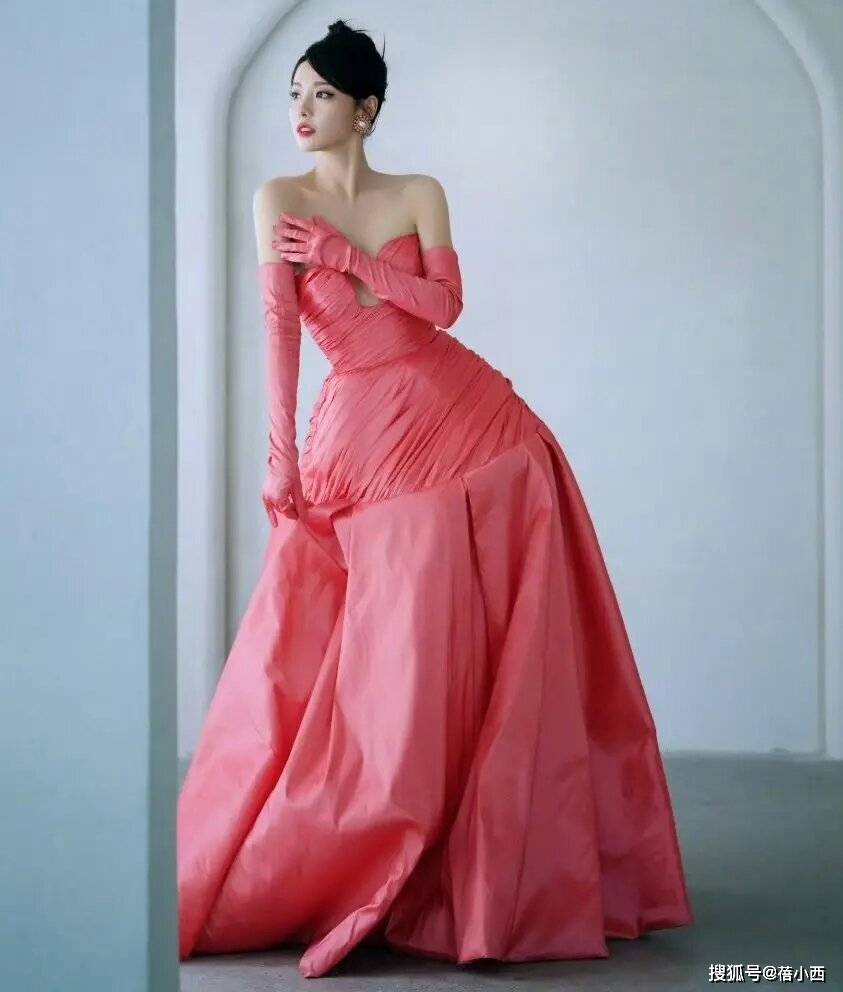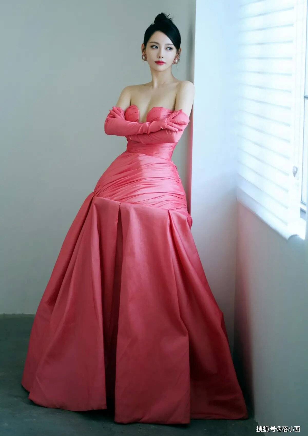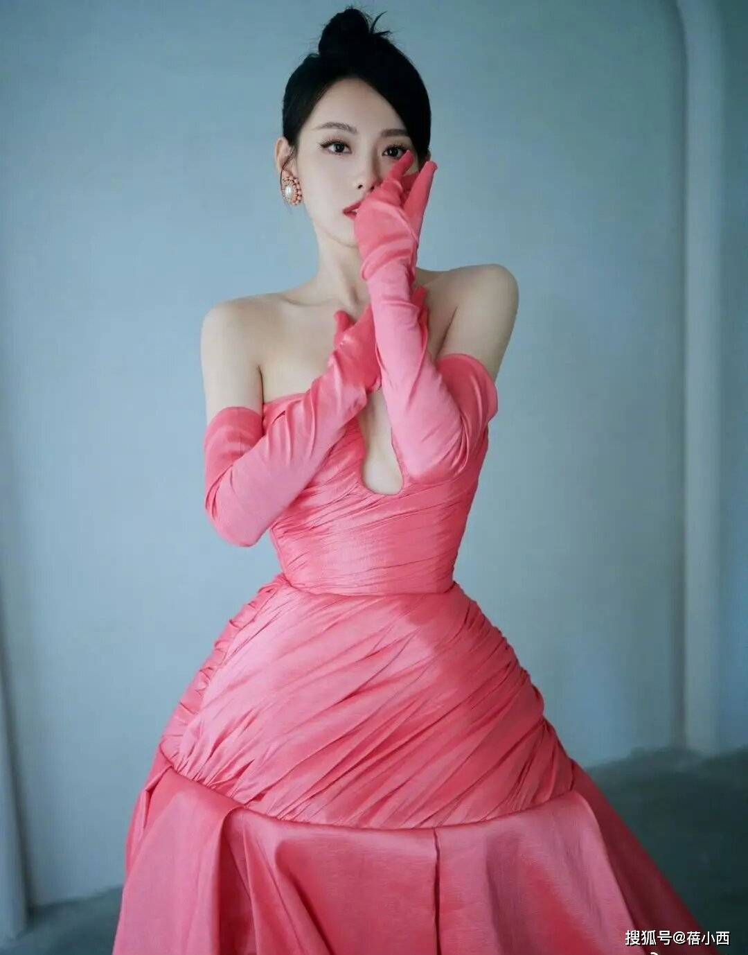 — 张嘉倪穿着粉色连衣裙,领口开得低,敢爱敢恨 —