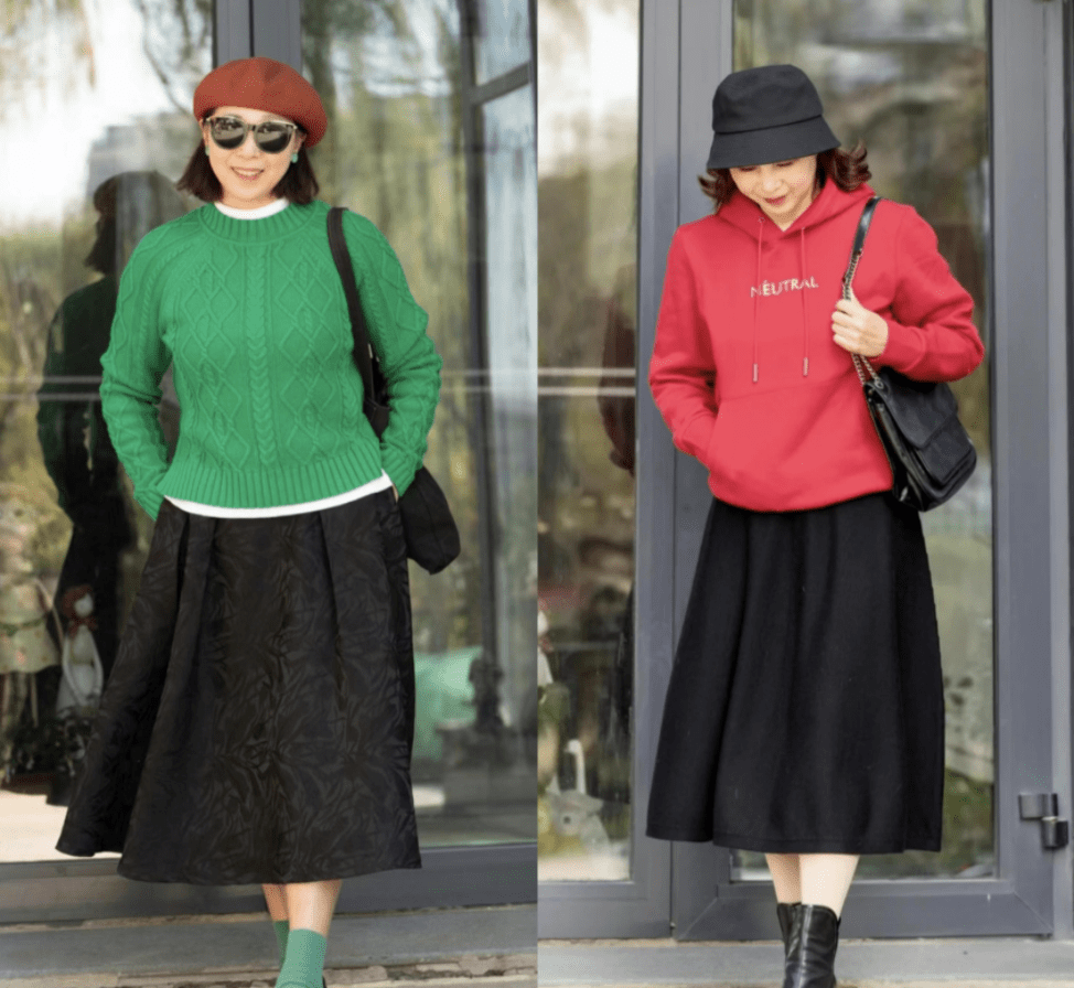 — 优雅呈现:女性五六十岁时,选择半身裙会更加优雅,展现出气质和优美的身材线条 —