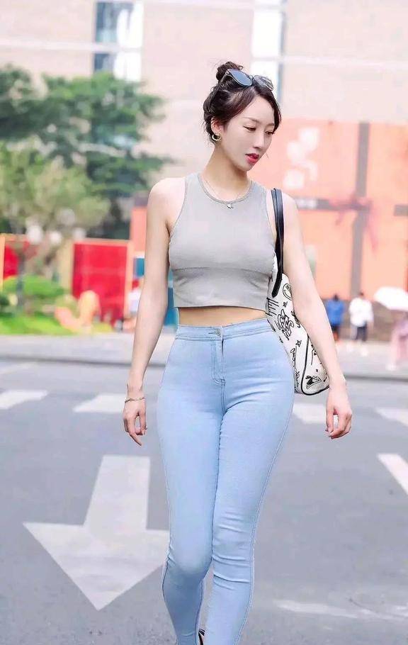 — 学会街拍技巧:女生紧身牛仔裤与短款上衣的时尚搭配,展现修身高挑效果 —