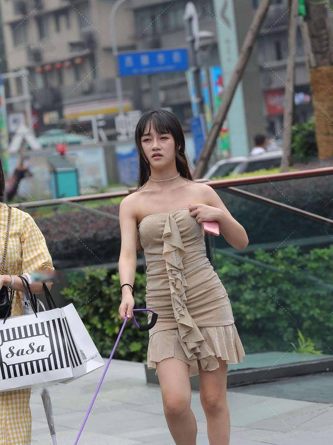— 时尚干练的平肩连衣裙,荷叶元素增添甜美可爱气质:一组街拍 —