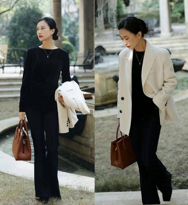 — 搭配示范:宽松阔腿裤也可以很优雅,搭配修身上衣,显瘦减龄 —