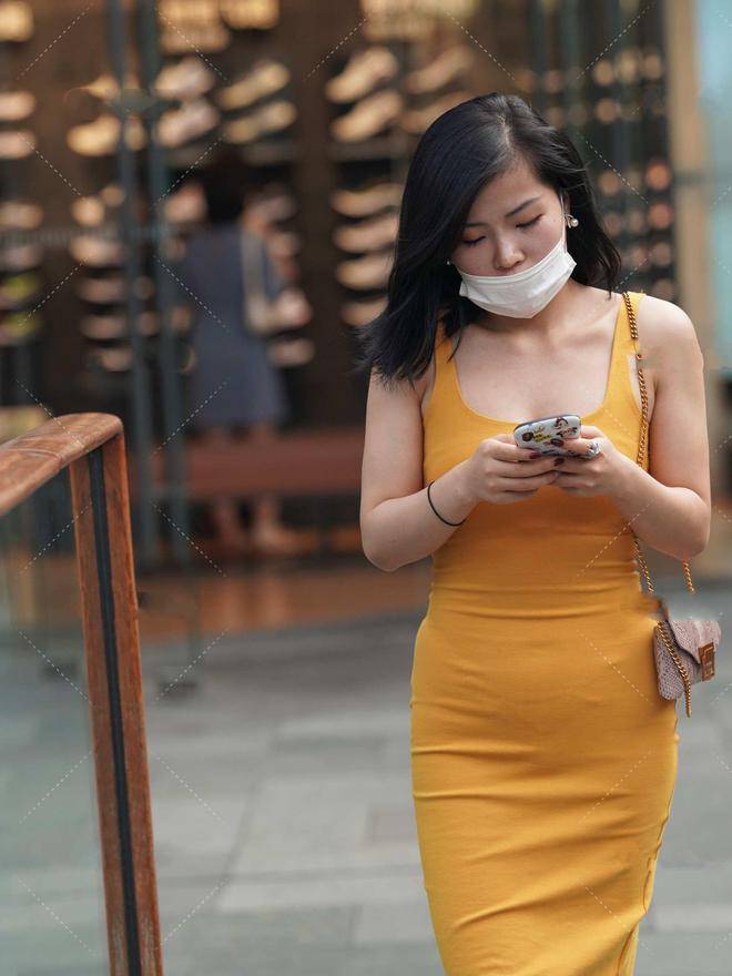 — 时尚街拍:时髦姜黄连衣裙搭配透明高跟鞋,彰显休闲优雅风范 —