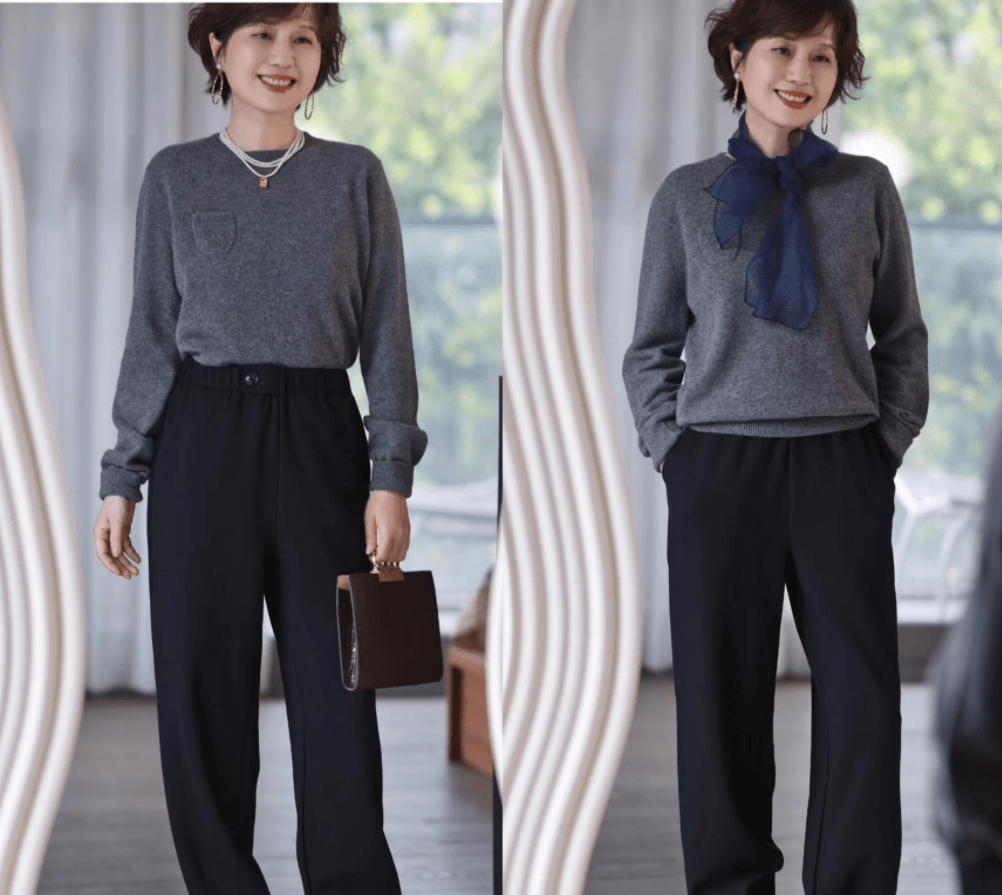 — 40岁女性秋冬时尚:针织衫与短风衣的大方简约风格 —