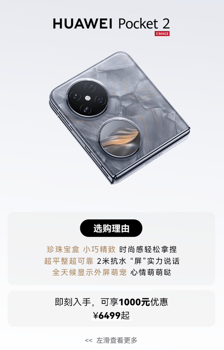 小折叠屏首选华为Pocket 2!颜值体验全面领先....推荐人:丁丁小编 发布时间:2024-10-22 12:10:02