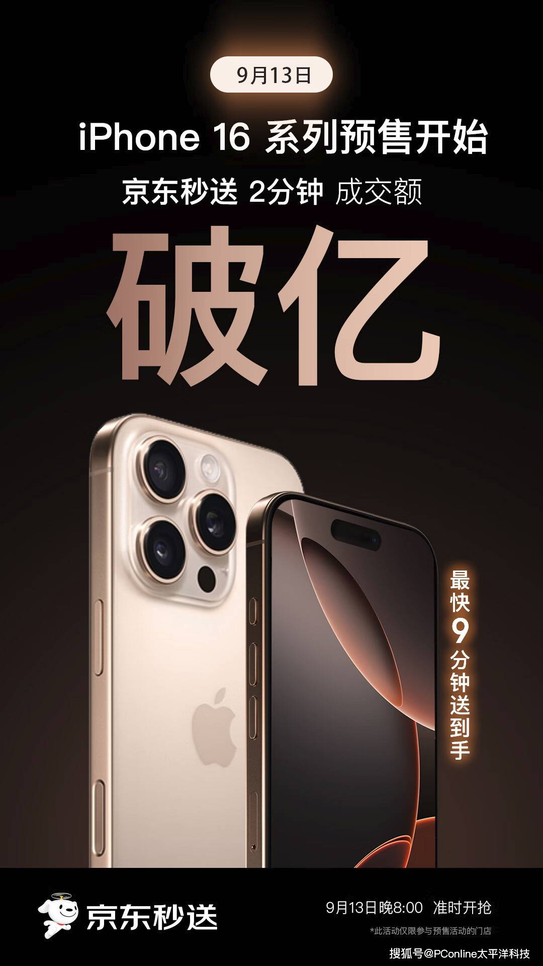 iPhone 16系列预售火爆 京东秒送2分钟成交....推荐人:丁丁小编 发布时间:2024-09-14 11:05:06