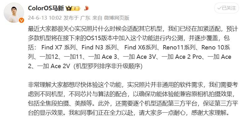 ColorOS 15曝光!Reno12系列的实况照....推荐人:丁丁小编 发布时间:2024-06-14 15:59:59