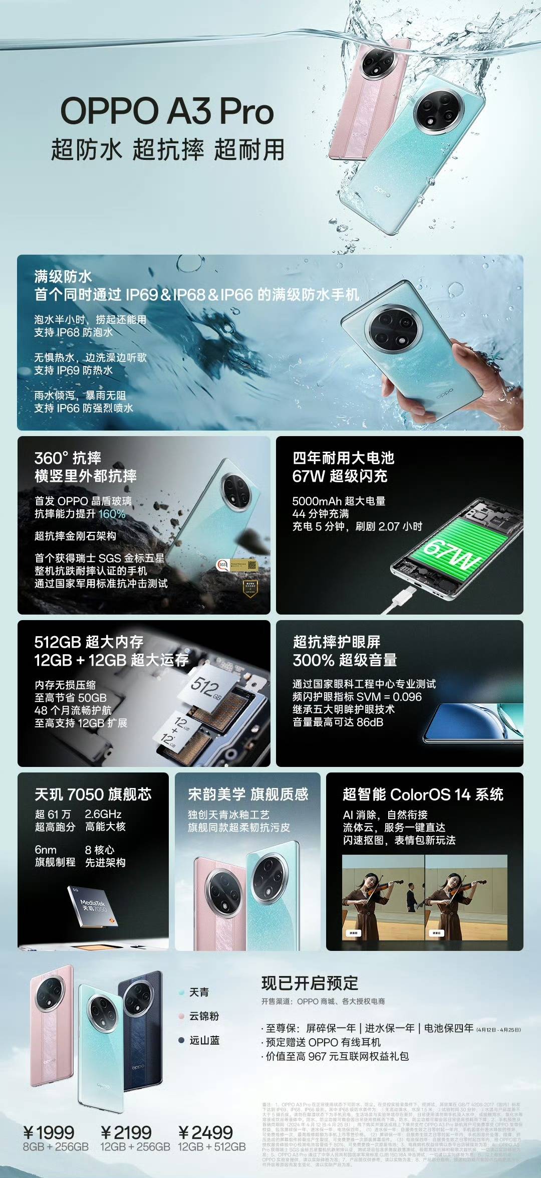 1999元起的安心防护,OPPO A3 Pro满级....推荐人:丁丁小编 发布时间:2024-04-12 16:10:03
