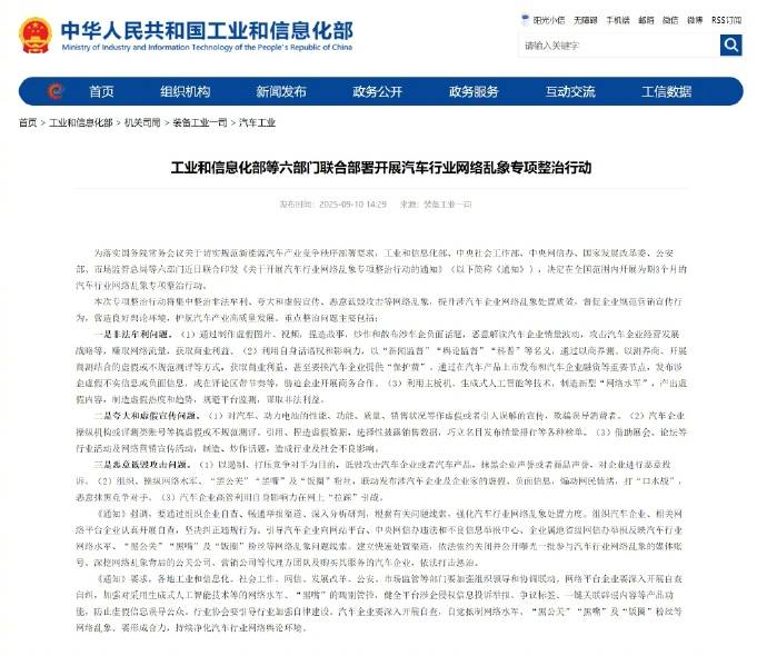 6部门联合整治汽车行业网络乱象 重点整治这3类问题推荐人:丁丁小编 发布时间:2025-09-11 16:35:57
