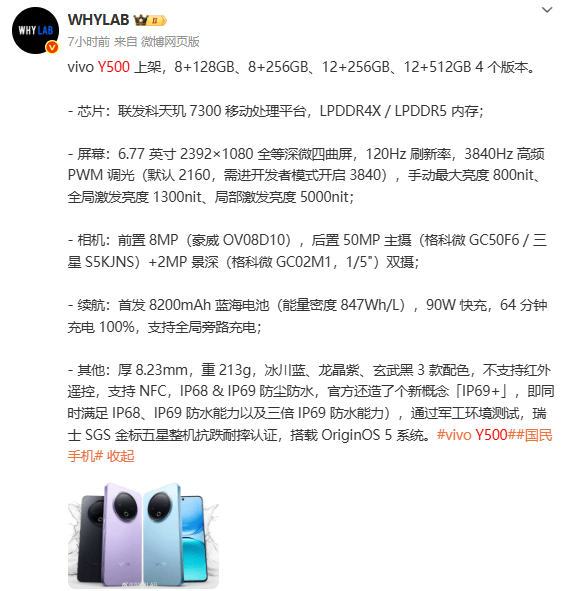 vivo Y500新机完整配置曝光 将于9月1日正....推荐人:丁丁小编 发布时间:2025-08-25 19:17:59