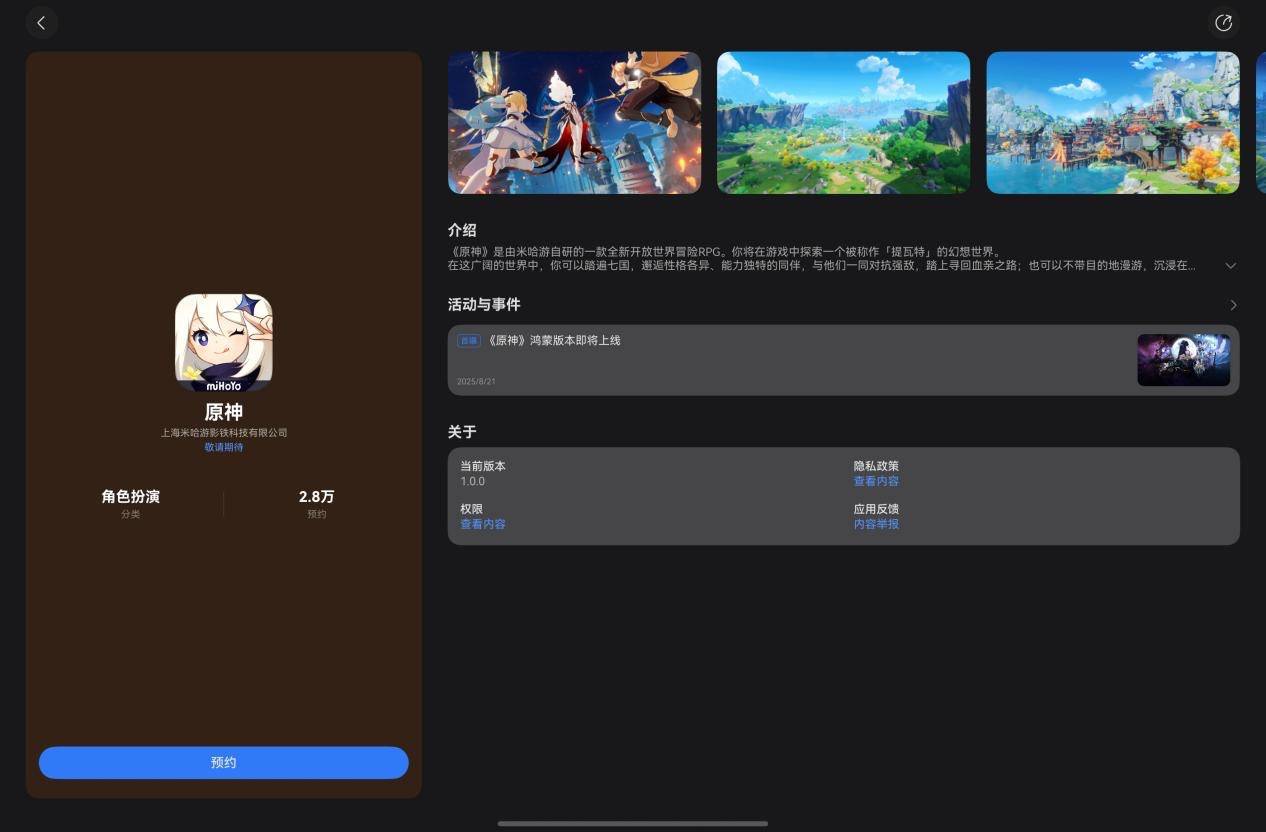 鸿蒙版《原神》正式启动预约,更有多款常用应用更新推荐人:丁丁小编 发布时间:2025-08-26 10:33:01