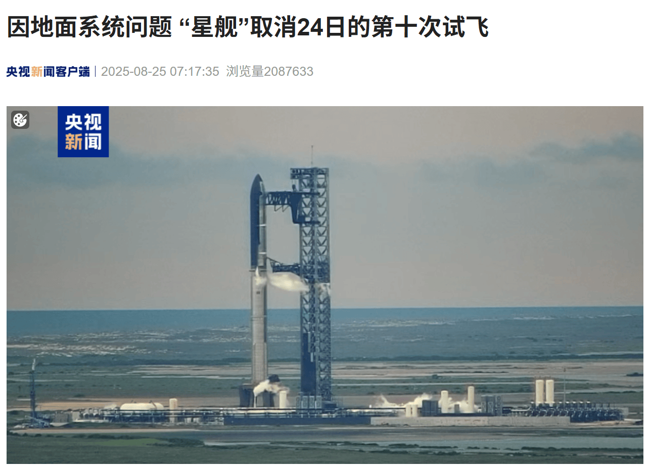 SpaceX取消星舰第十次试飞 原因是地面系统出现....推荐人:丁丁小编 发布时间:2025-08-25 11:30:04