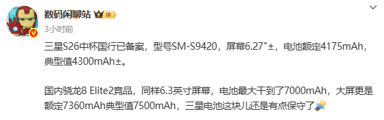 三星Galaxy S26 Pro国行备案:搭载骁龙....推荐人:丁丁小编 发布时间:2025-08-15 13:18:02