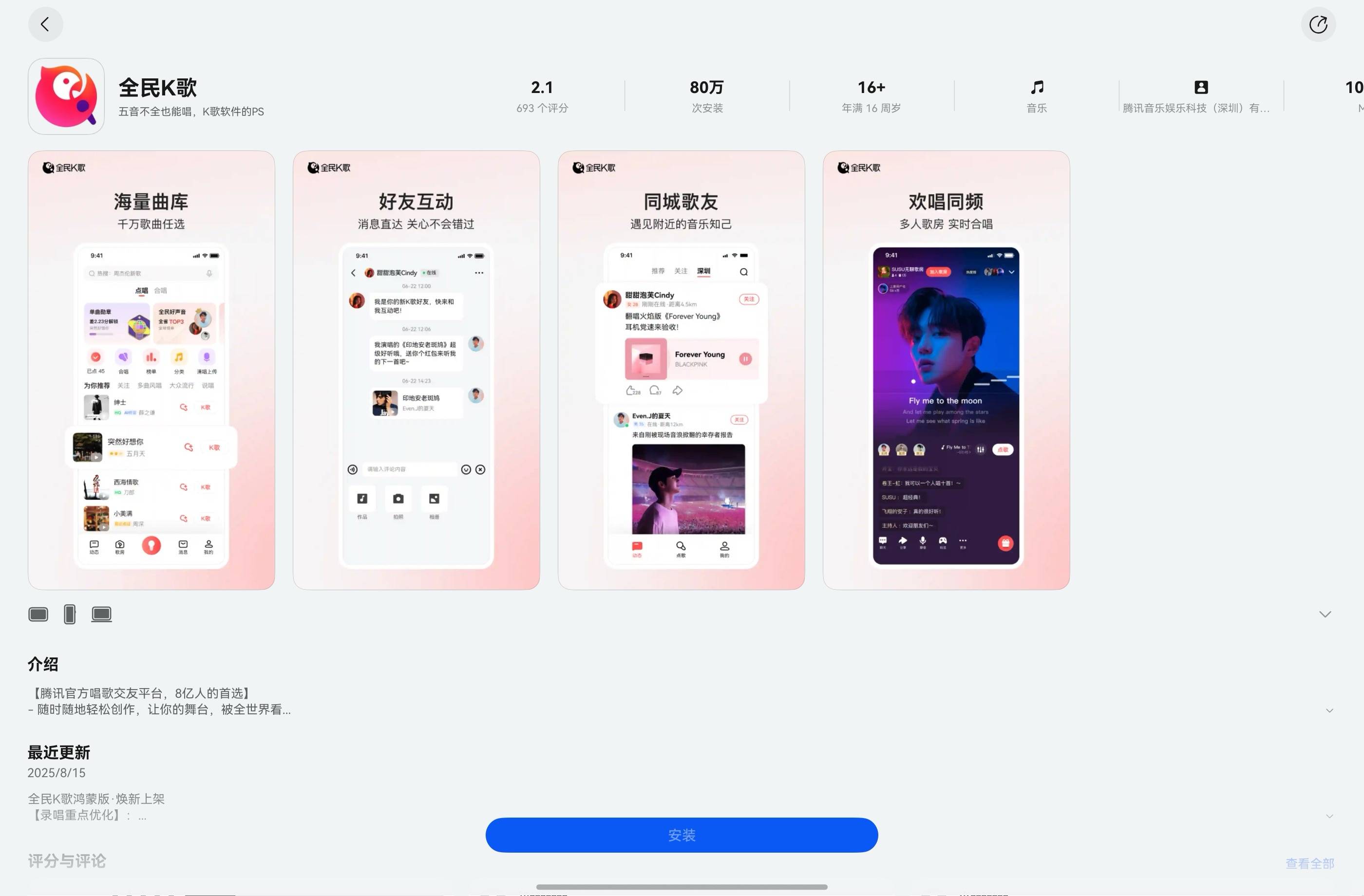 娱乐、学习两不误,鸿蒙版全民K歌、微信读书等多款应....推荐人:丁丁小编 发布时间:2025-08-15 15:33:02