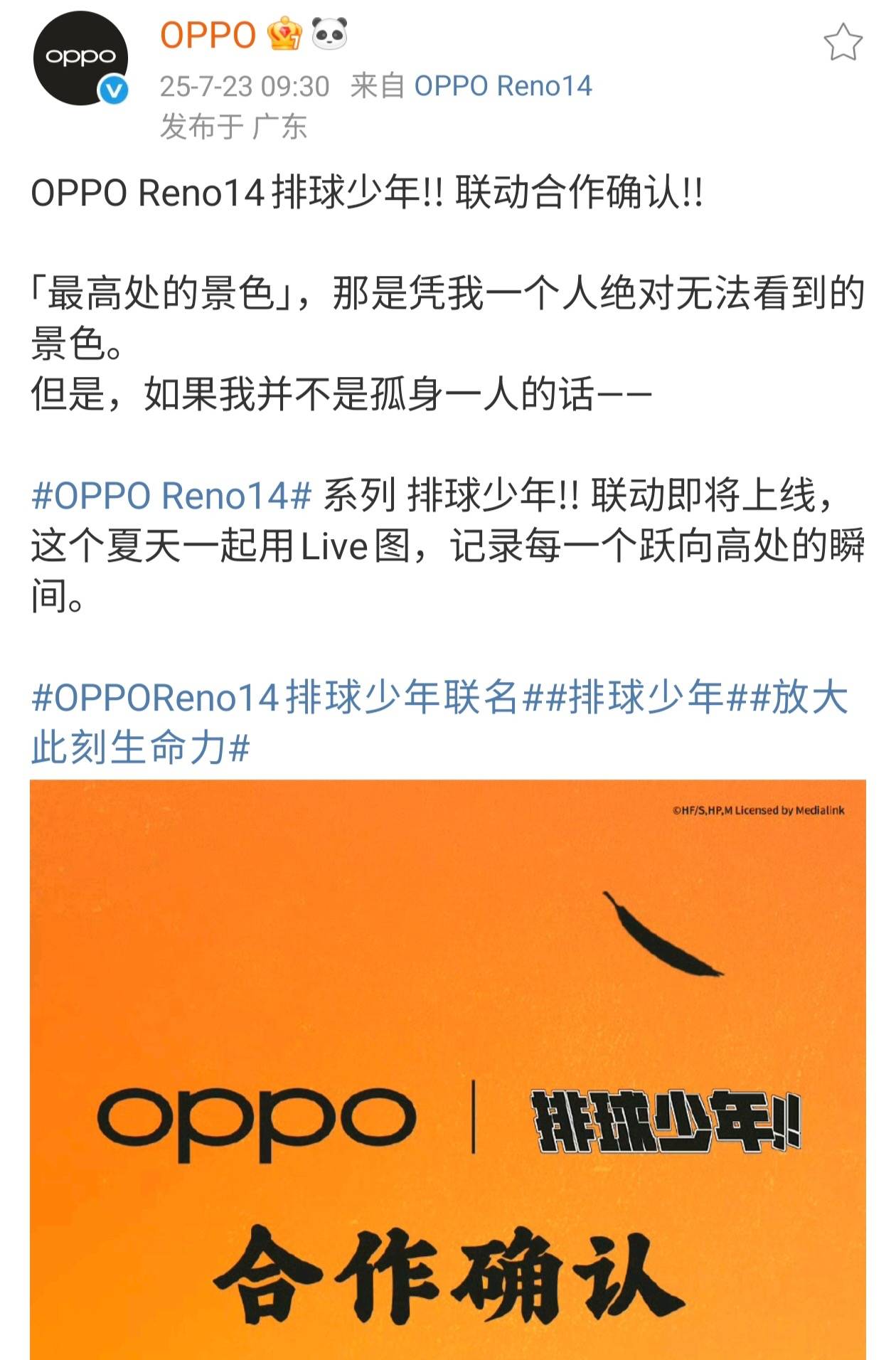 OPPO Reno 14系列联动《排球少年》!8月....推荐人:丁丁小编 发布时间:2025-07-23 16:05:59