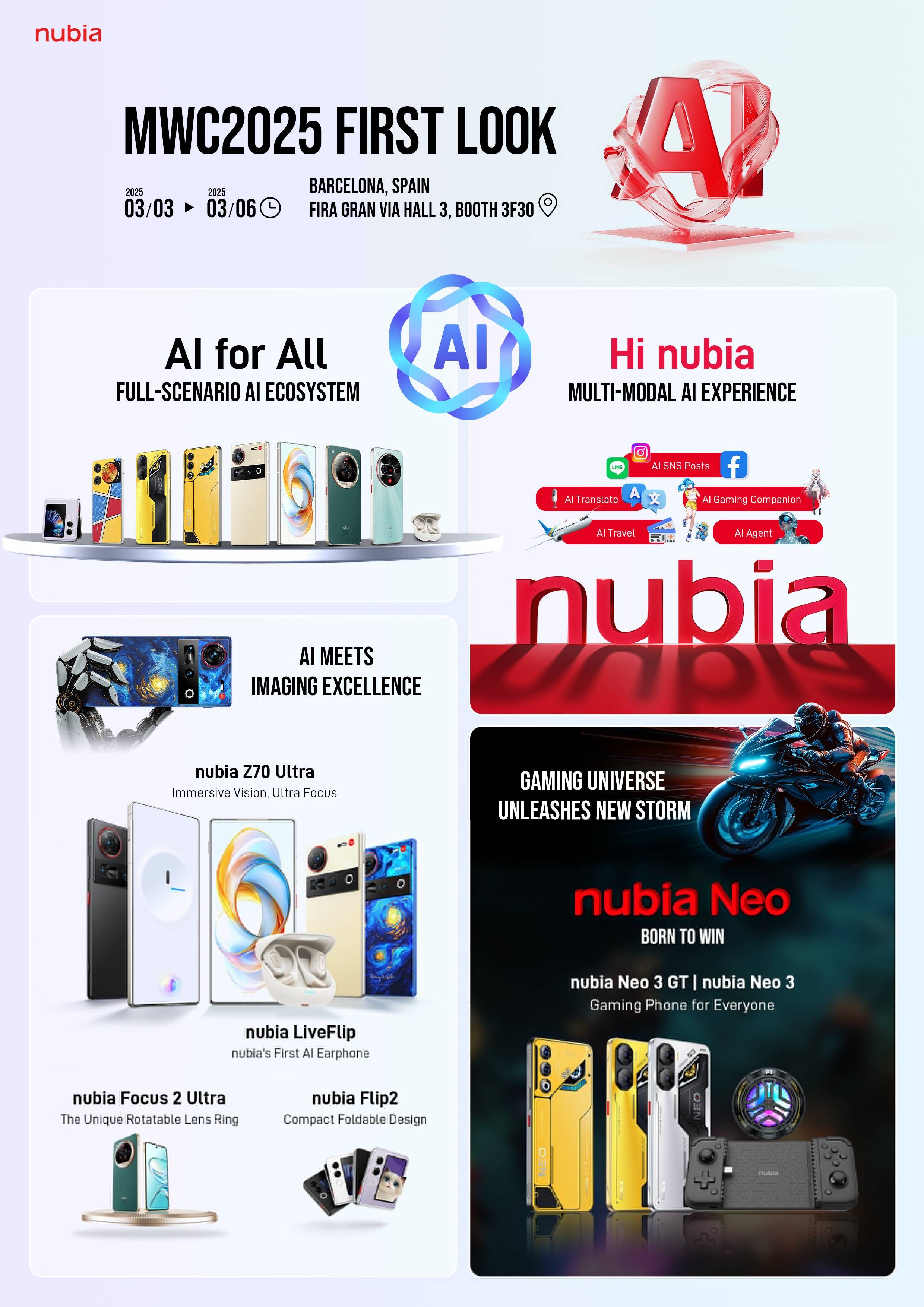 努比亚将以“AI for All”为主题,在MWC....推荐人:丁丁小编 发布时间:2025-02-26 17:35:02