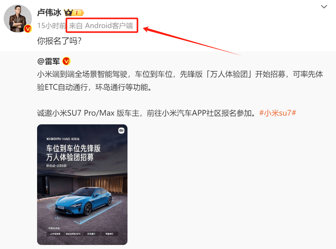卢伟冰微博测试新机,小米15 Ultra提上日程?推荐人:丁丁小编 发布时间:2025-01-27 12:05:02
