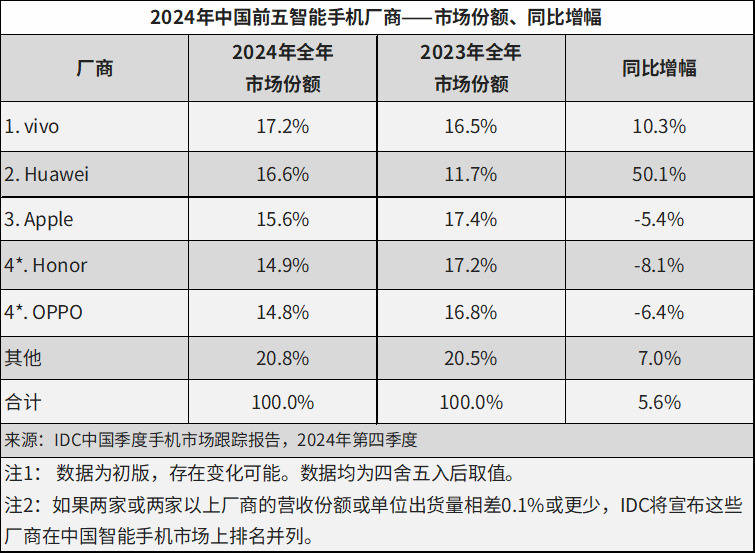 2024年中国智能手机出货量约2.86亿台,viv....推荐人:丁丁小编 发布时间:2025-01-20 17:30:02