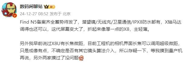 OPPO Find N5已备案齐全蓄势待发,预计将....推荐人:丁丁小编 发布时间:2024-12-31 09:14:58