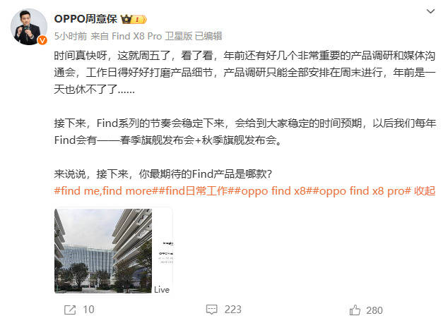 OPPO周意保:Find系列以后每年春秋季各一场旗....推荐人:丁丁小编 发布时间:2024-12-28 10:25:03