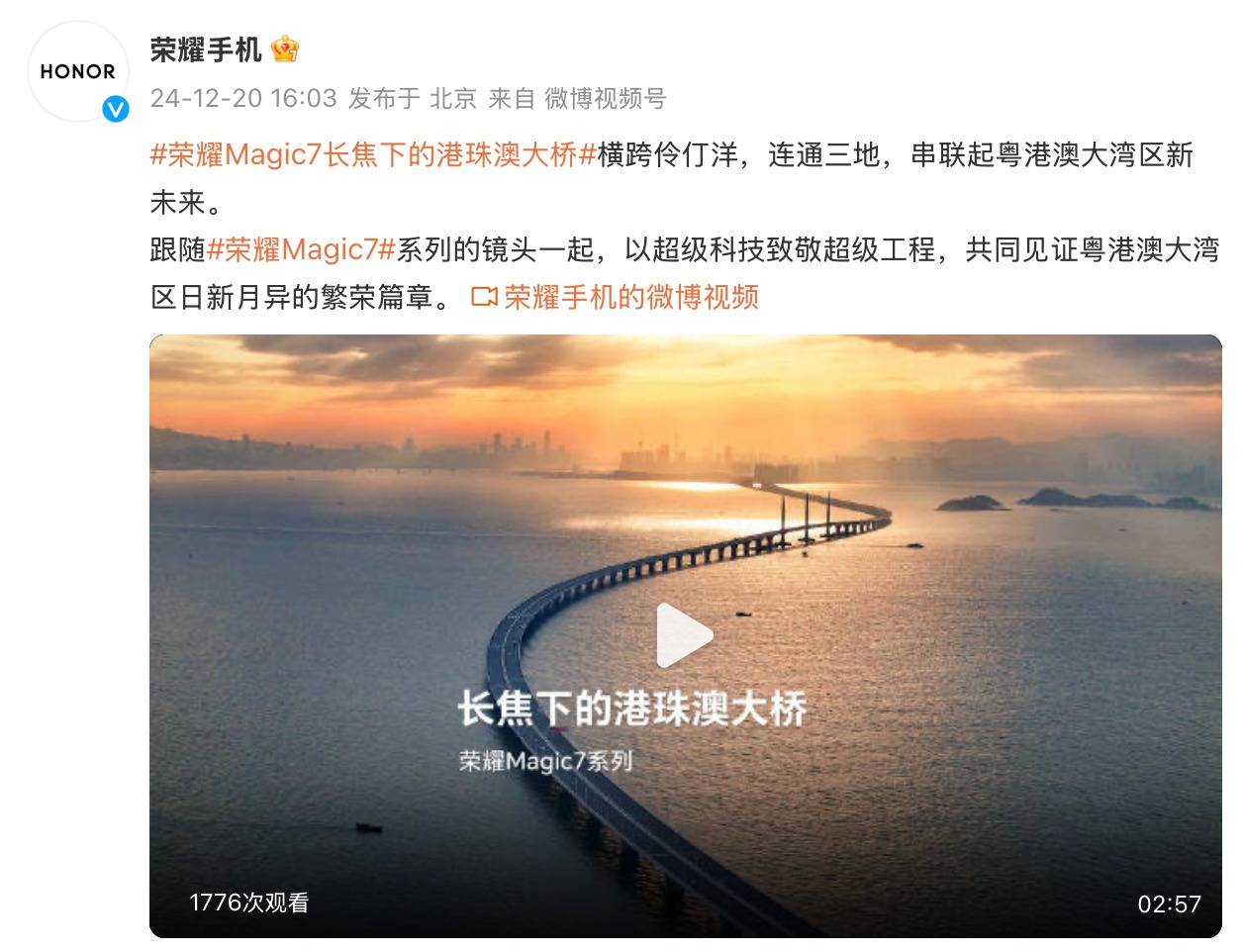 荣耀Magic7长焦下的港珠澳大桥,先锋影像聚焦超....推荐人:丁丁小编 发布时间:2024-12-21 09:05:03
