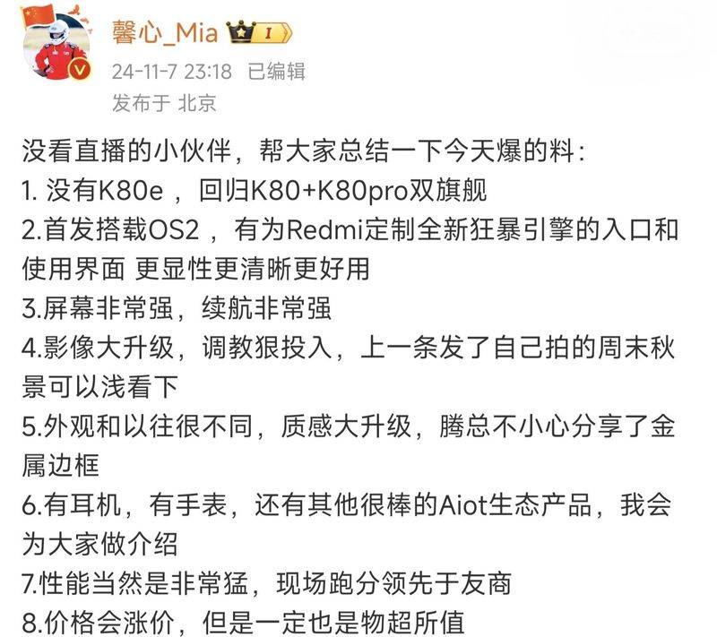 Redmi K80系列官方爆料汇总 回归双旗舰价格....推荐人:丁丁小编 发布时间:2024-11-08 11:05:04
