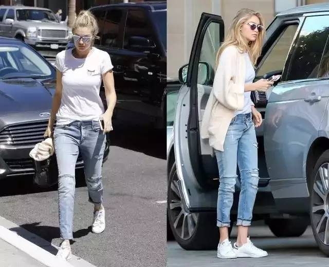 - 街拍:牛仔裤好看又百搭,搭配一字肩上衣很经典,百搭时尚