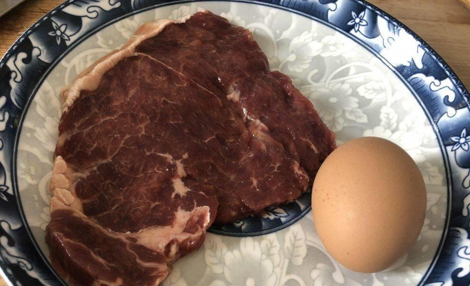 — 不了解情况的人直接吃掉牛排上的“生鸡蛋”,引发网友的嘲笑 —