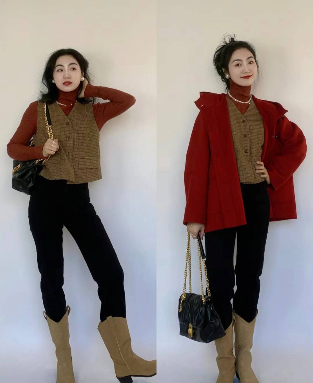 — 时尚女性今年冬天大胆尝试红黑配色,既引人注目又充满高级感 —