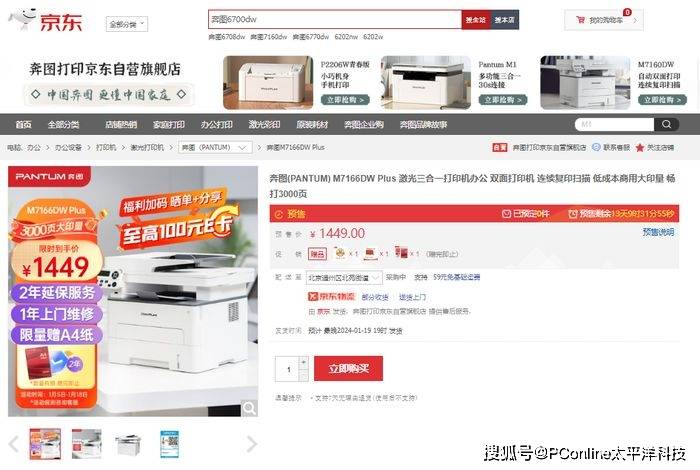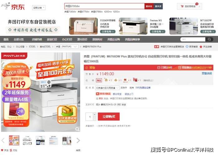 — 京东全球首发奔图M6766DW Plus激光打印机 首发期享预售直降400元 —
