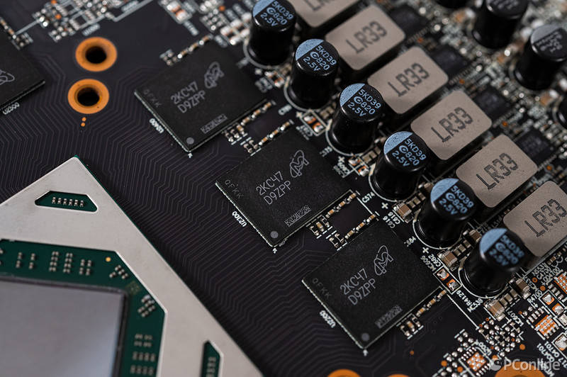 核心供电为9相,显存供电为2相,每相核心配备一颗威世通用半导体公司的SiC632A DrMos,单颗持续输出电流为50A。