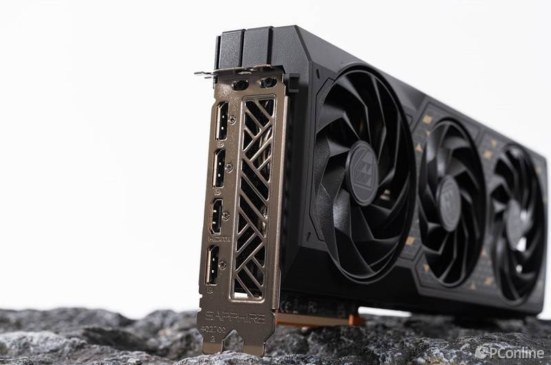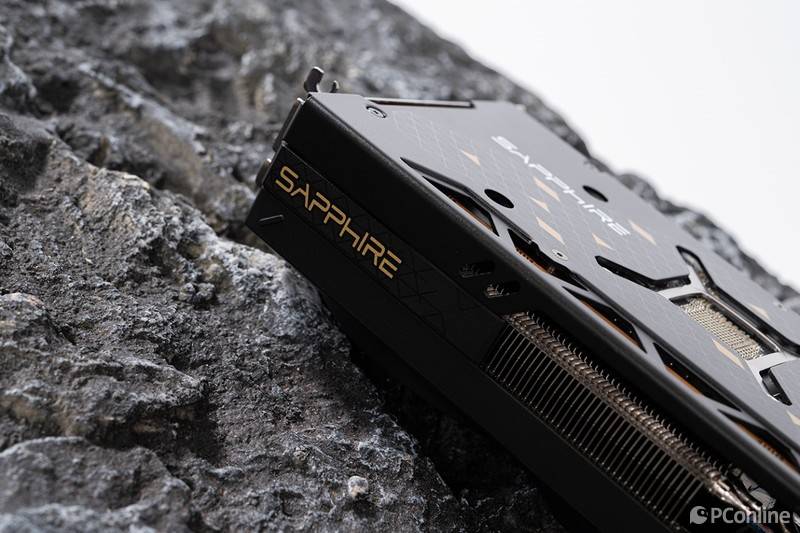 看看显卡的四周,蓝宝石也进行了开孔设计,镂空的位置对应着是显卡散热的出风位置,让显卡的吹出来的热风能够快速散发,这样既保证显卡的机械强度,又尽量不影响显卡的散热效能。