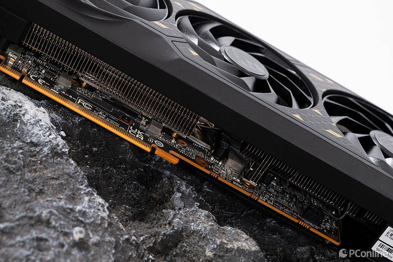 PCIe金手指也是供电的一环,搭配上面的6+8Pin可以实现大约300W的供电能力。另外这里也提醒大家,在显卡上机前,记得一定要打开主板的Resizable BAR功能,这样才能跑满带宽,完全发挥显卡性能。