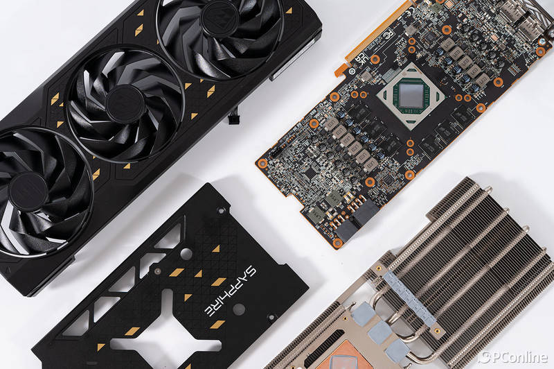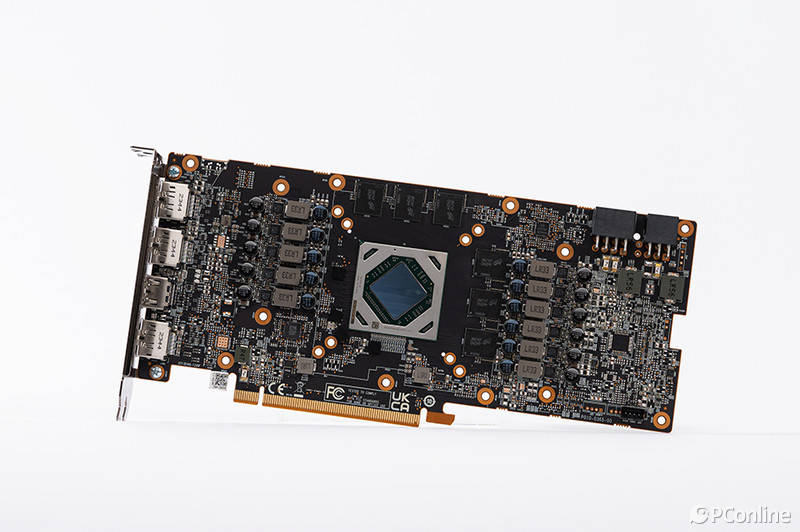 PCB的中央就是本次的主角了,Navi 22XT,与RX 6700 XT上的是同款,由台积电7nm工艺打造,并且得益于更高超高的制程工艺,这颗核心足足有172亿个晶体管,芯片面积也达到了336mm2。