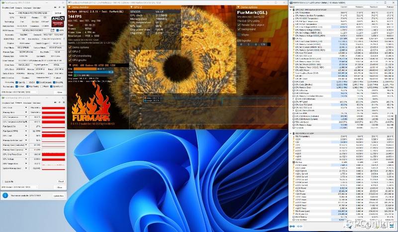 最后是功耗与温度测试,在室温20°的环境下,Furmark甜甜圈设定为1920×1080分辨率。在烤机15分钟后,蓝宝石RX 6750 GRE 12G D6黑钻版的核心频率能够稳定在2155MHz,满载功耗也仅有185W。不过这是高负载的情况,日常使用基本不会达到这个程度。