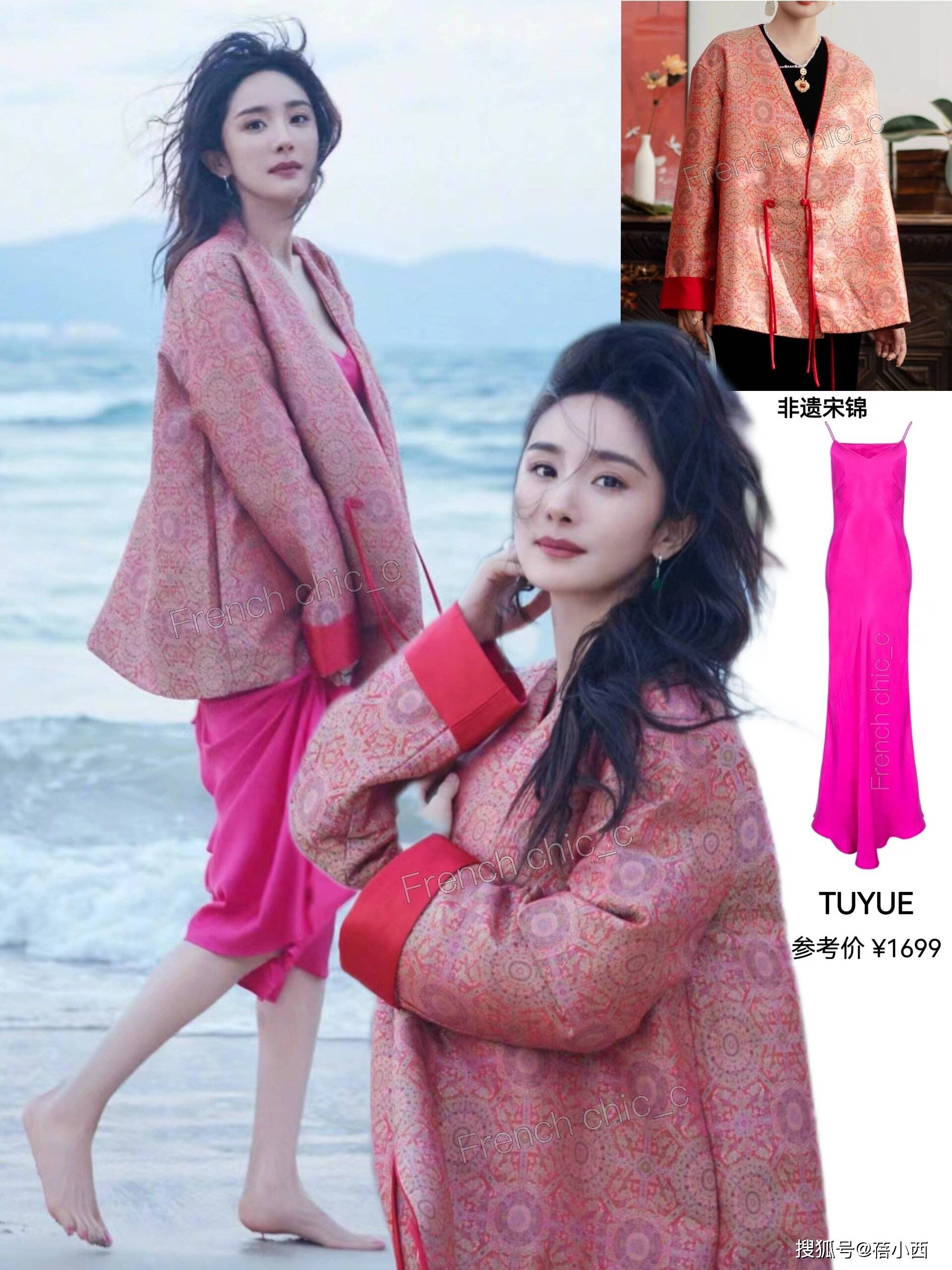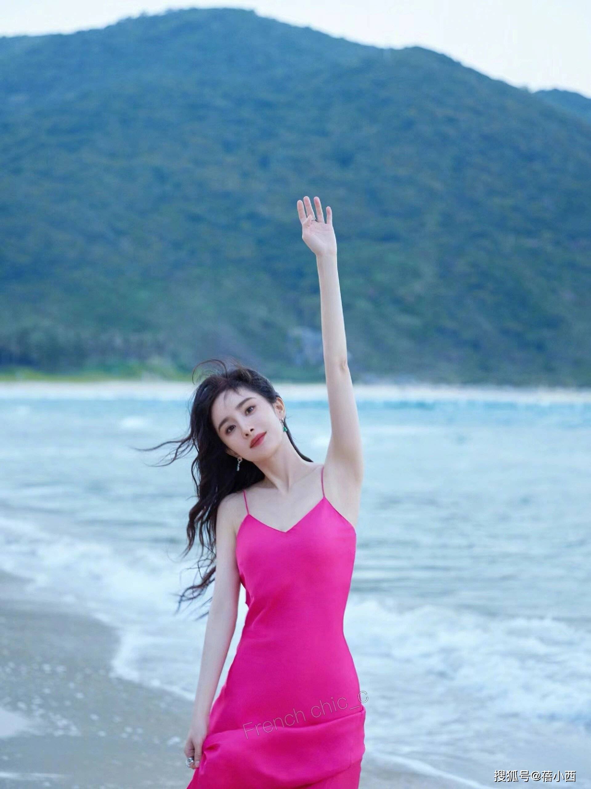 — 海边杨幂展示高级魅力:时尚宋锦吊带睡裙风潮 —