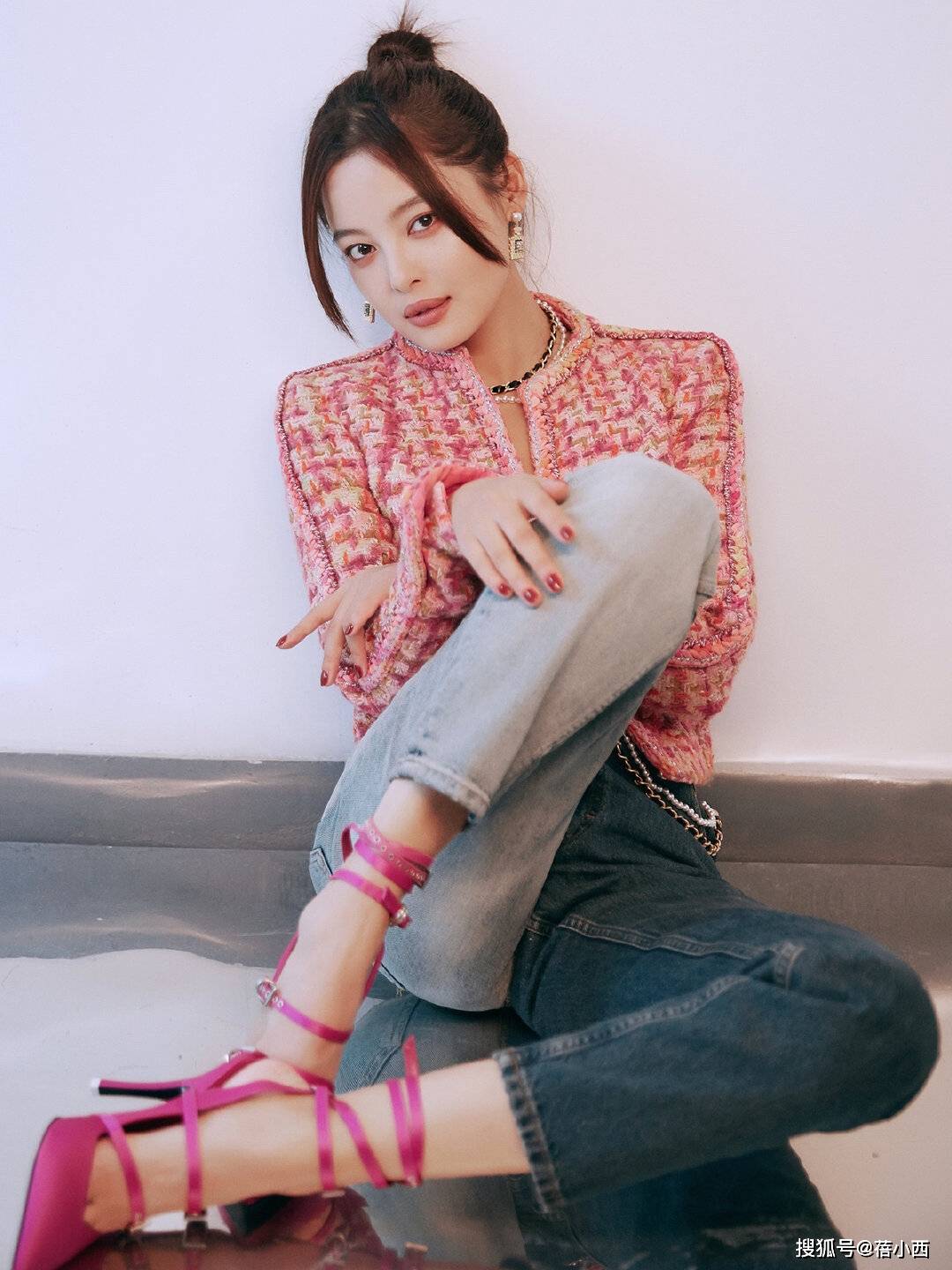 — 辛芷蕾搭配时尚短外套与鸳鸯牛仔裤,展现高级与洋气的新穿搭方式 —