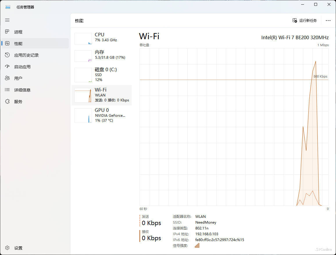 无线网卡:Intel BE200 Wi-Fi 7