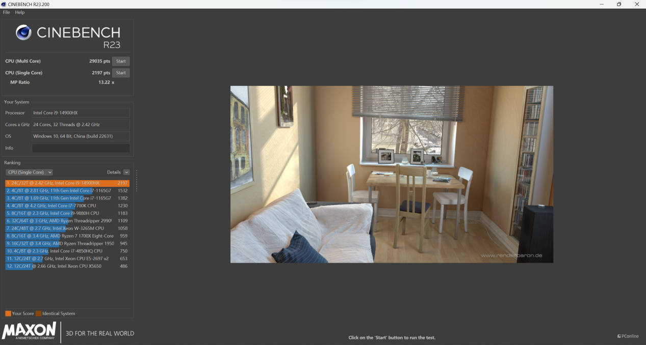 在CINEBENCH R23中: