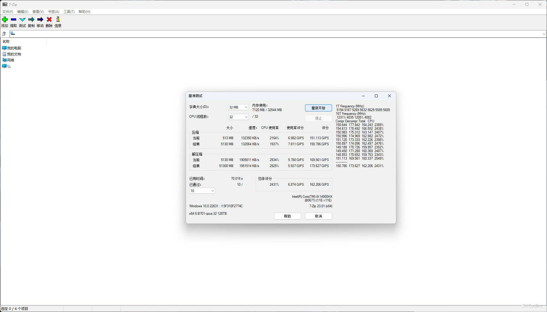 压缩/解压缩性能测试7z