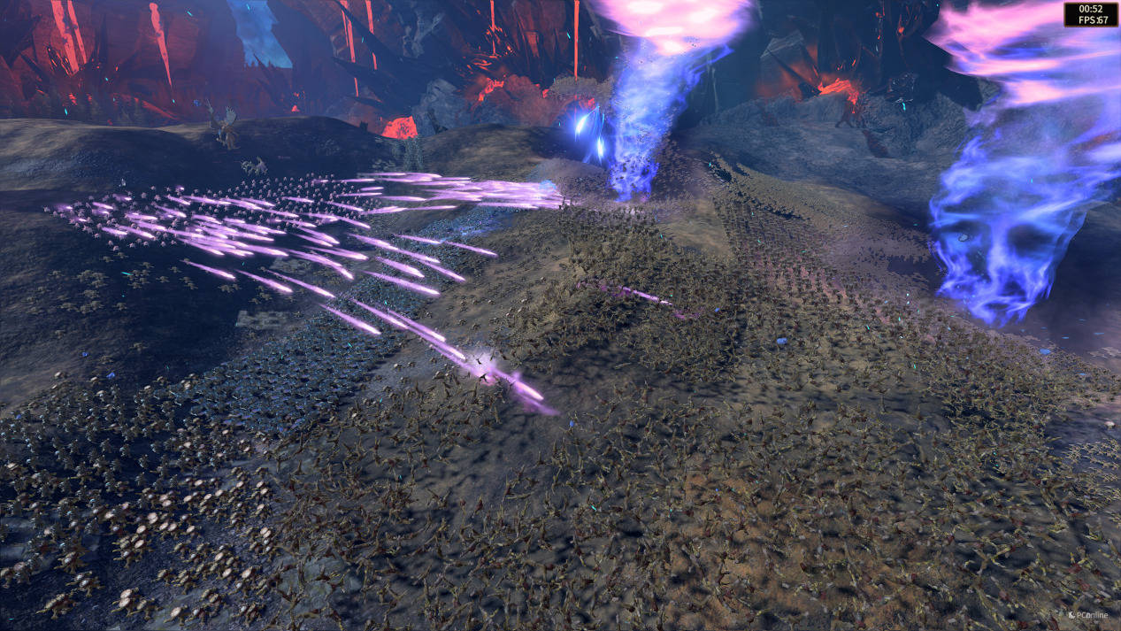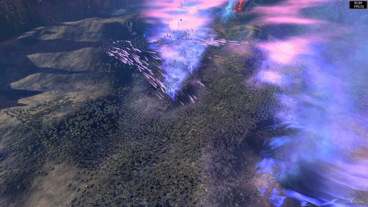 《全面战争:战锤3》在后期的战斗场景或者PVP中经常有着极多的单位和特效,并且战斗中需要玩家对麾下部队进行微操,游戏的帧数是非常重要的,于是我还测试了Mirrors of madness的BenchMark项目,该测试的特点是单位极其之多,各种粒子效果也极其之多,是对CPU和GPU的双重极致考验,最终在i9-14900HX+RTX 4090 Laptop GPU的加持下,七彩虹将星X17 Pro Max也能够达到74的平均帧数,说明在这种有些“变态”的压力之下,七彩虹将星X17 Pro Max也可以轻松应对。