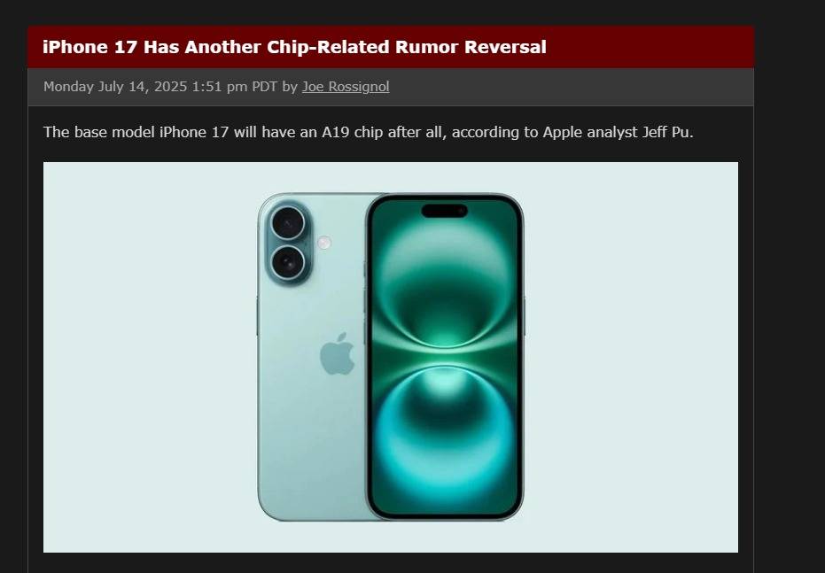 全系搭载A19系列芯片!苹果iPhone 17系列....推荐人:丁丁小编 发布时间:2025-07-16 17:05:59