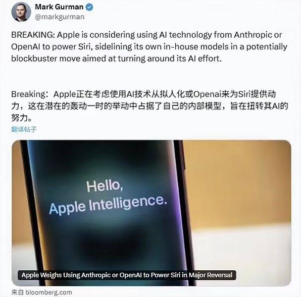 苹果自研AI战略搁浅:或放弃自研转向Anthrop....推荐人:丁丁小编 发布时间:2025-07-01 15:33:00
