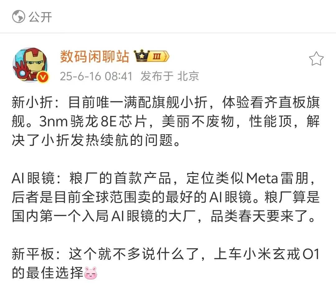 这台搭载「骁龙8至尊版」的折叠机皇下周发布,性能捅....推荐人:丁丁小编 发布时间:2025-06-25 16:03:00